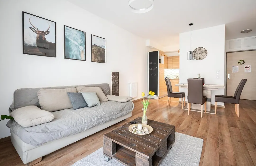 Die Gäste können in diesen Unterkünften Selbstversorgereinrichtungen nutzen, einschließlich einer voll ausgestatteten Küchenzeile, und ihre Mahlzeiten in einem Essbereich genießen. Diese Unterkünfte befindet sich in unmittelbarer Nähe von der U-Bahn-Station II. János Pál pápa tér.